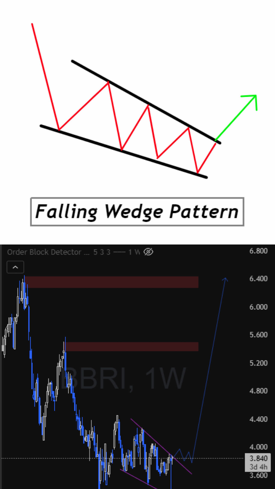 $BBRI sudah membentuk pola Falling Wedge, pola ini memiliki kecenderungan 7 dari 10 kejadian jebol ke-atas, Siapkan sabuk pengaman, Perjalanan masih panjang.🤩