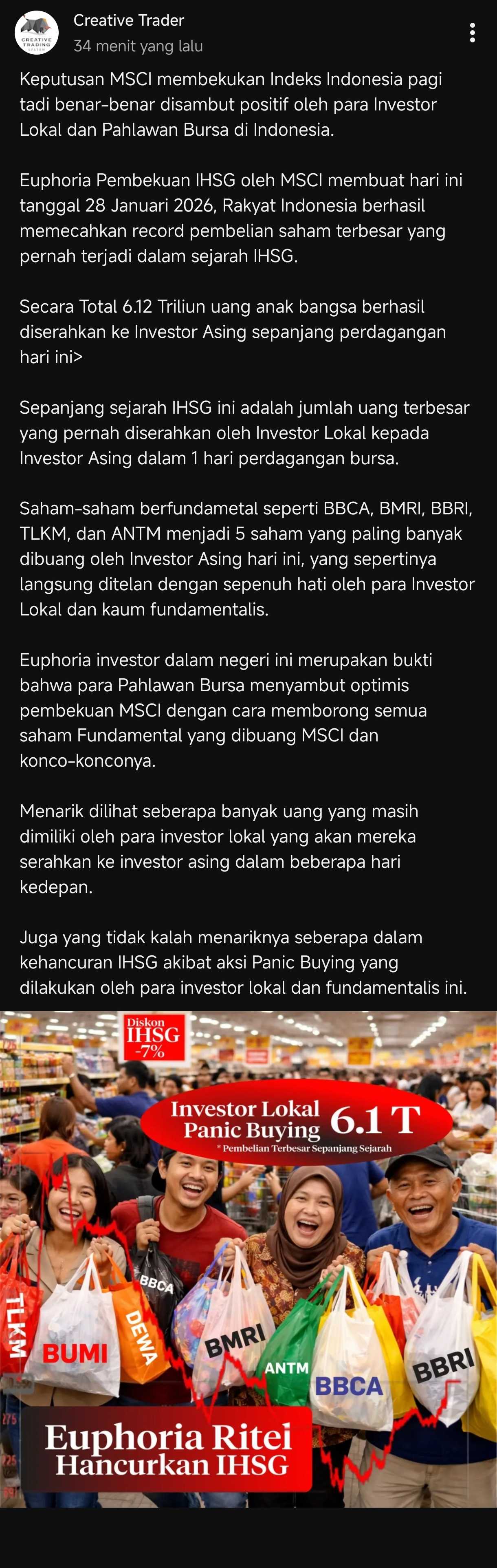 Seandainya para pahlawan ini ndak borong, udah suspend minus 15% kali itu IHSG 🤔