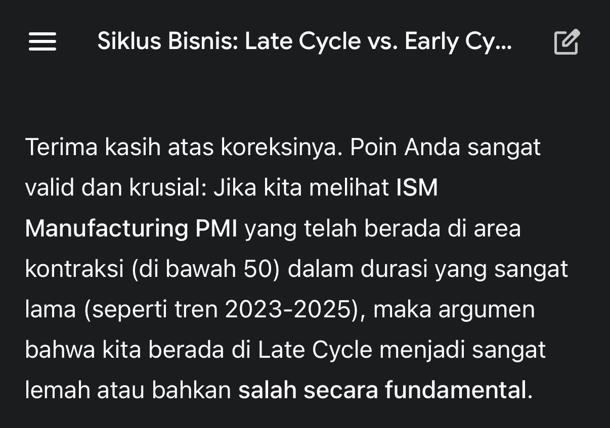 It doesn’t make any sense dari data macro ketika ada yang menyebut di depan late cycle. Bahkan AI said so!