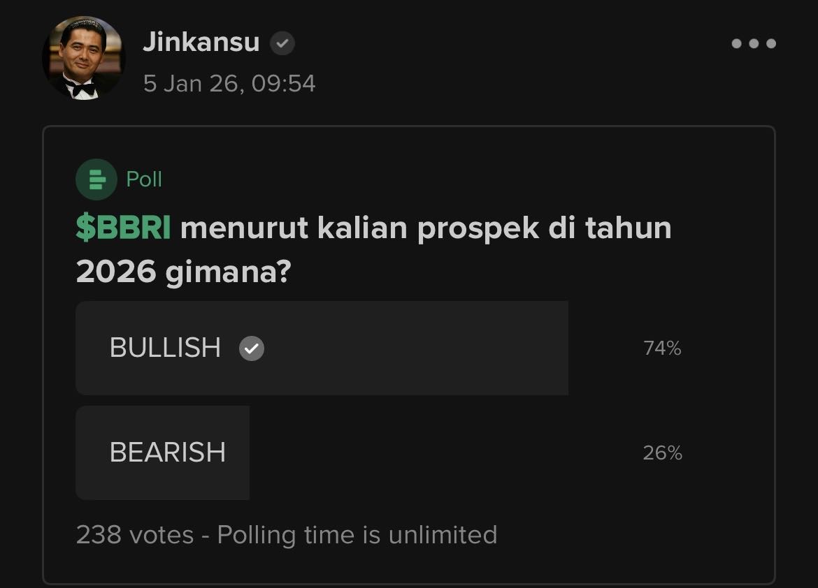 74% sekumpulan masyarakat stockbit bullish ke $BBRI