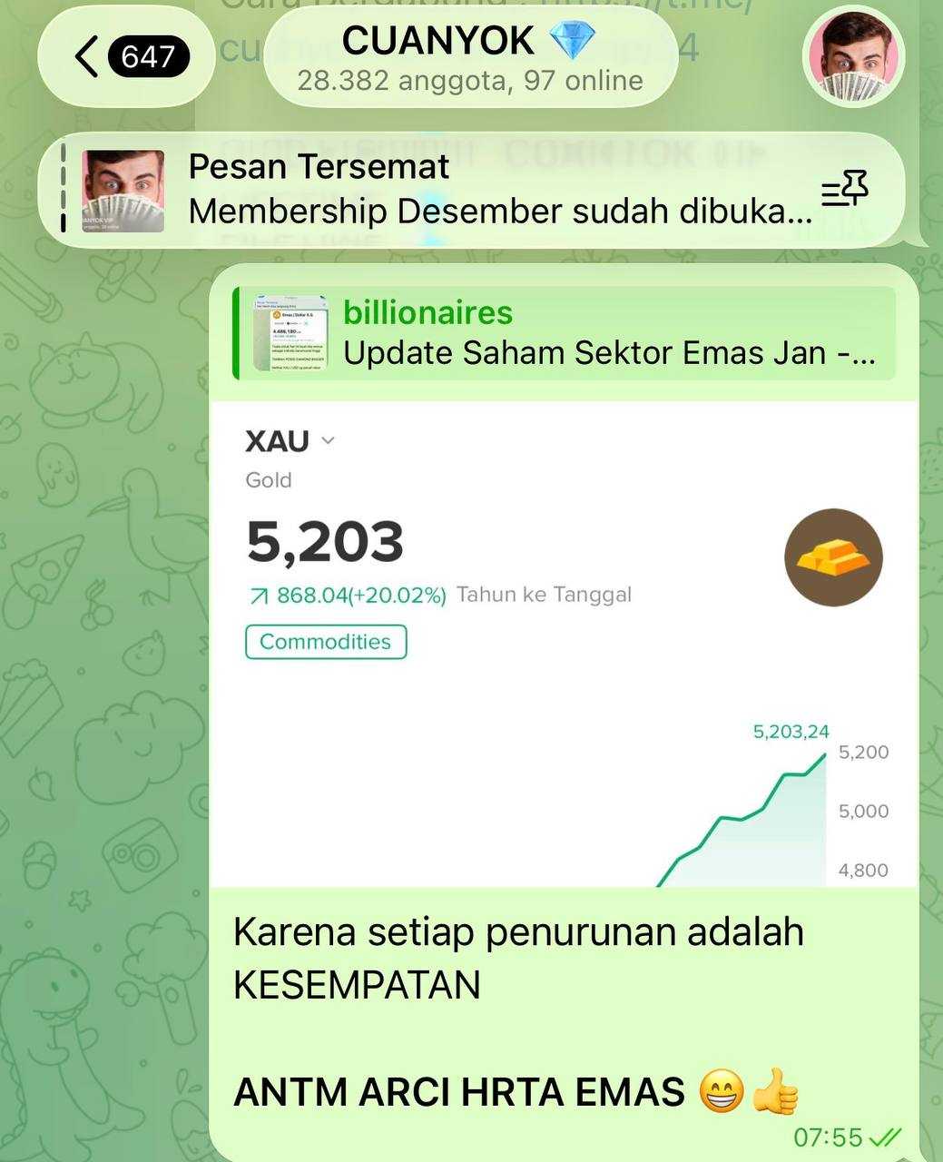 Peluang satu-satunya alasan buat masuk besok cuma emas/perak. Harga komoditas aslinya ($5.279 & $112) itu nggak bohong. Divergensi harga saham vs harga komoditas udah jauh..