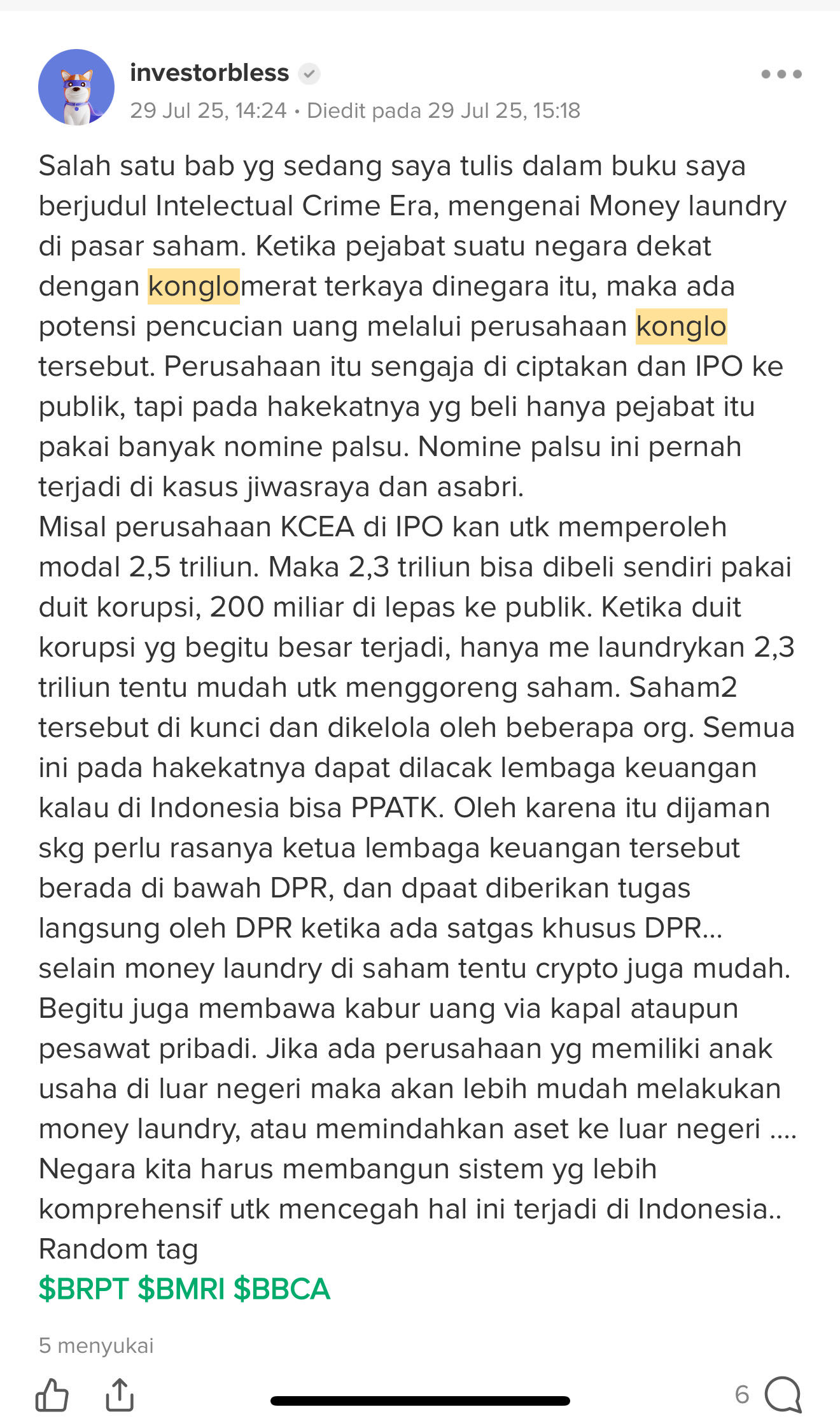 4. Kita masuk ke BEI padahal kita tau mereka seperti OJK semua korup dan bangsat?