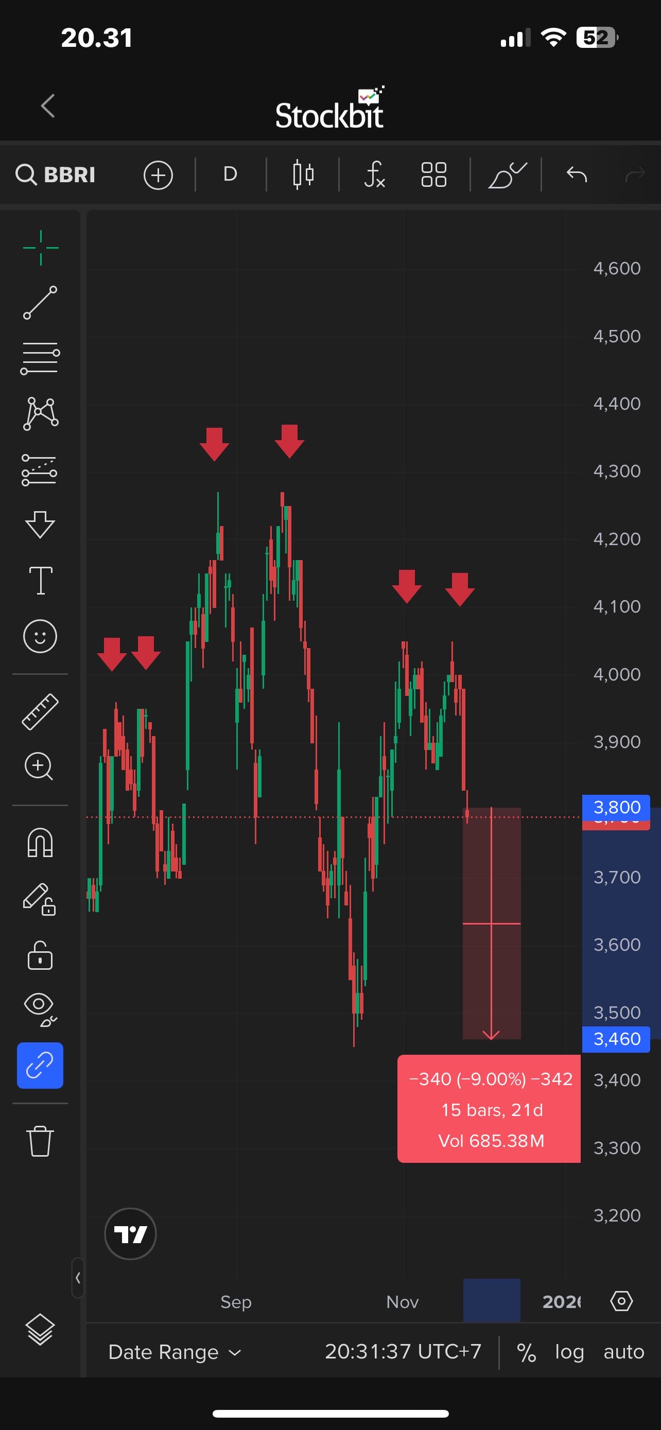 $BBRI gwa bukan benci bbri. Gwa hanya penikmat capital gain. Kalian harus terbuka mata lebar. Skrng bbri lgi Double top . Pelajari double top itu apa