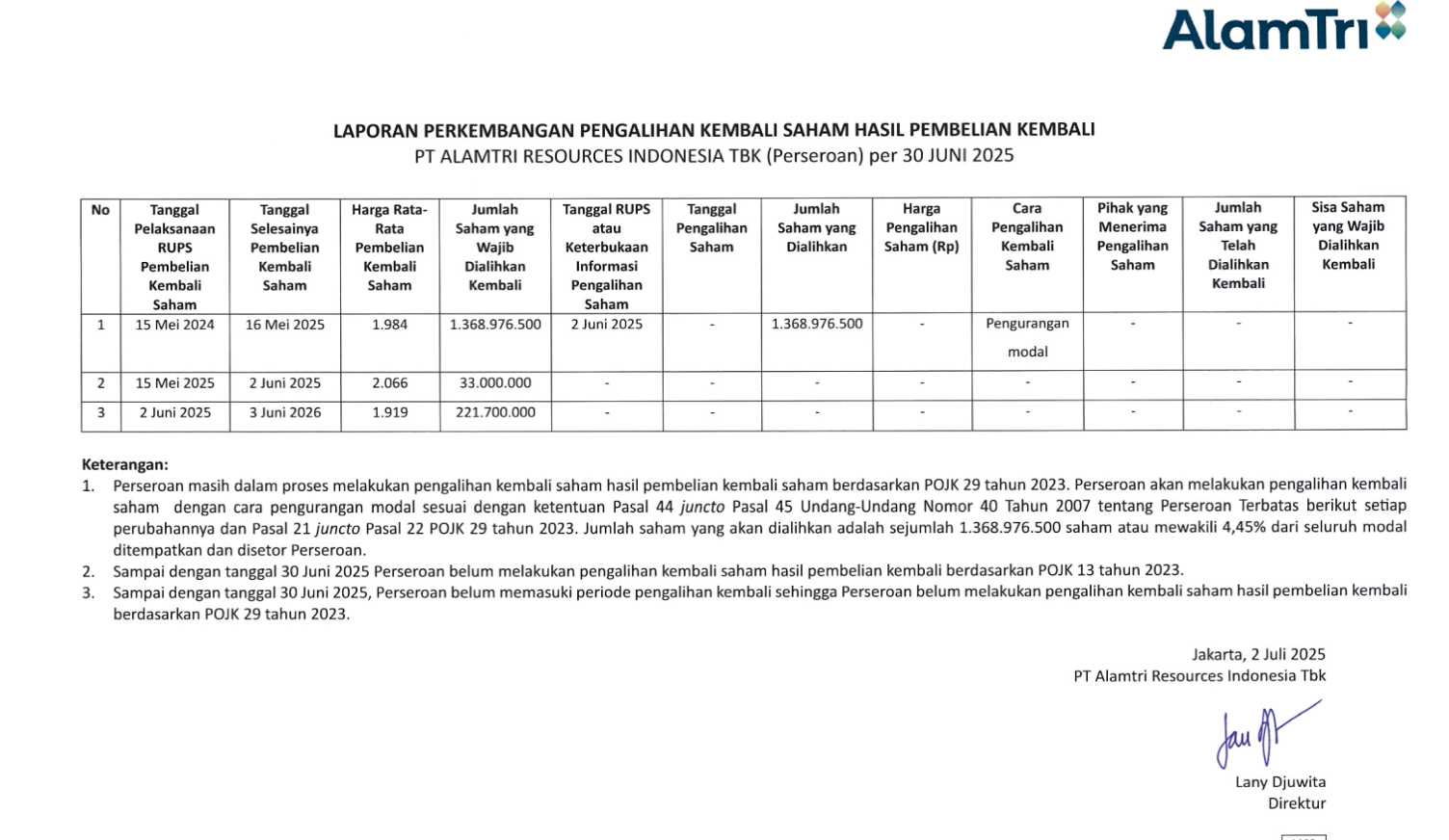 @Nurulsmart itu $ADRO ndak jual saham tapi bakar saham treasury