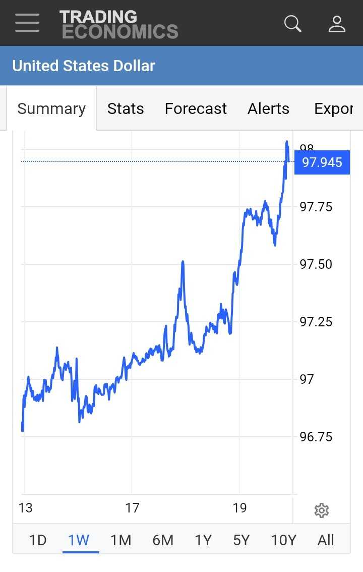 ❌ US Dollar Index DXY masih terus melonjak hingga mencapai 98.