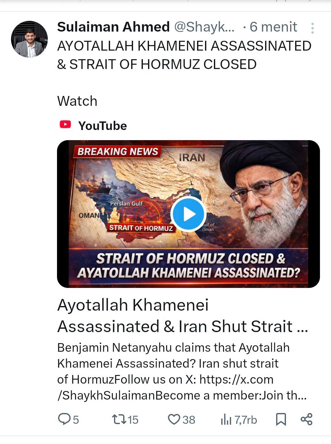 Iran sendiri belum memberikan respon konfirmasi.