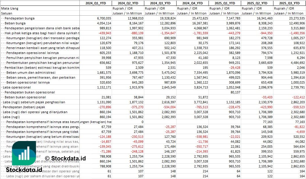 KABARBURSA.COM – PT Bank Tabungan Negara (Persero) Tbk (BTN) mencatat penguatan signifikan pada sejumlah indikator fundamental perbankan hingga kuartal III 2025.