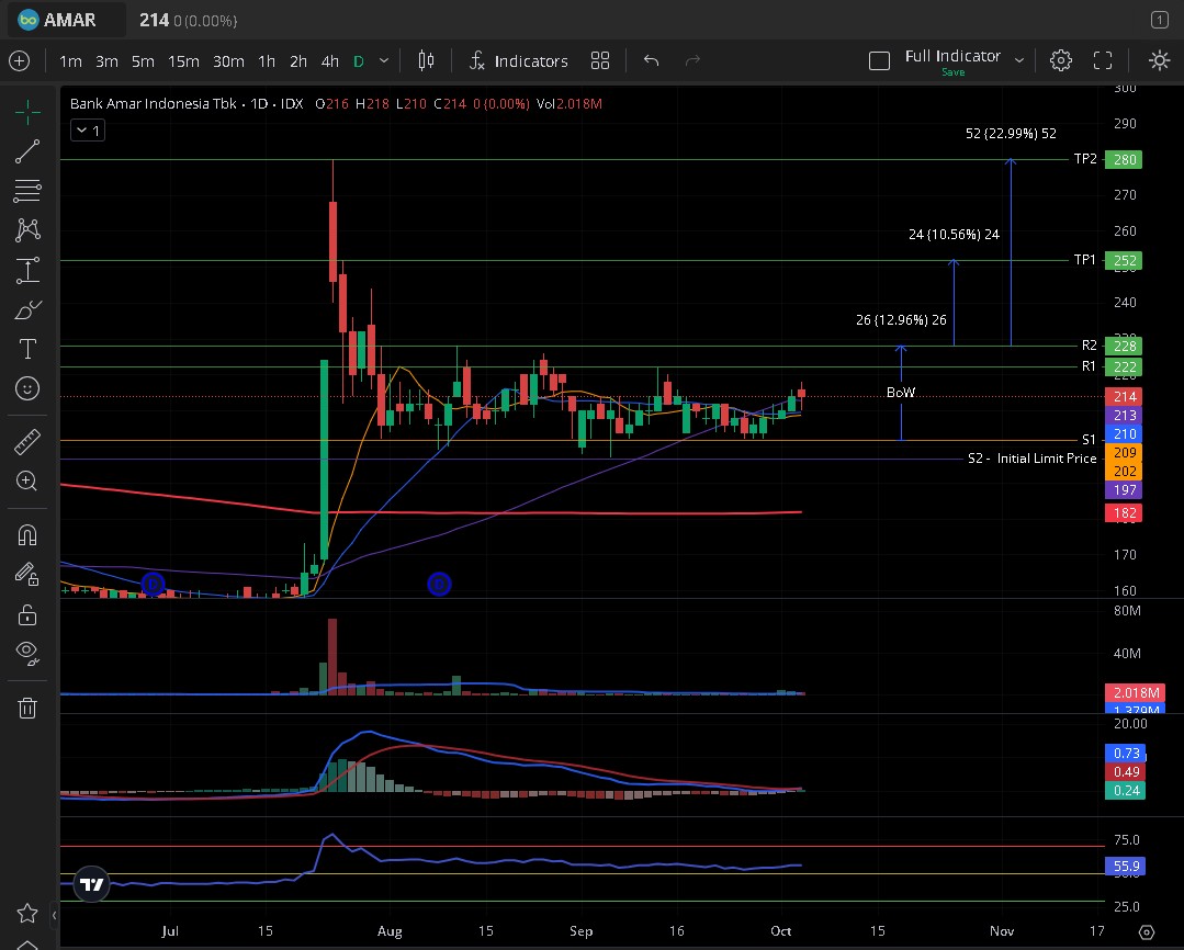 $AMAR saat ini terpantau masih konsolidasi panjang. Menarik kalau bisa BO > 228, untuk potensi kenaikan sekitar 10-22% ke 252-280.