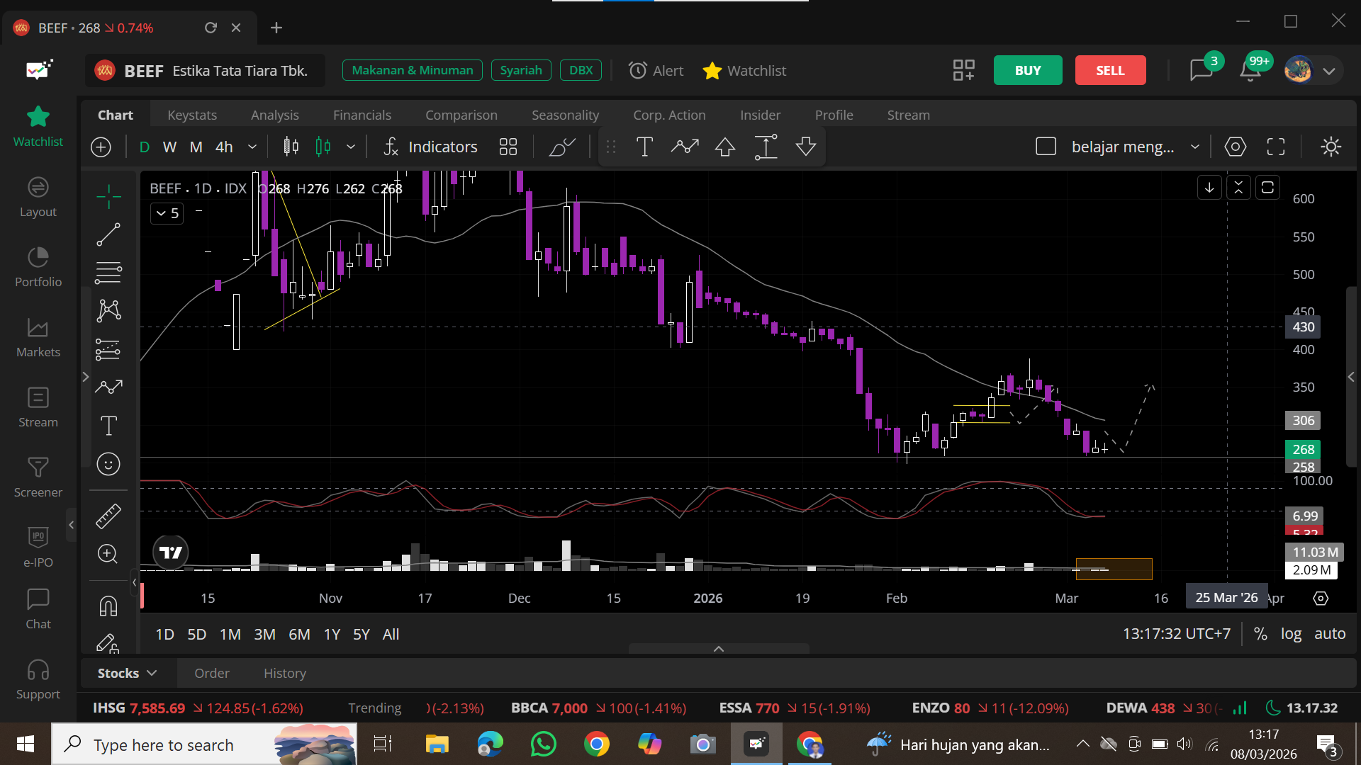 • BEEF saham sektor peternakan & protein yang biasanya bergerak mengikuti sentimen konsumsi dan komoditas pangan
