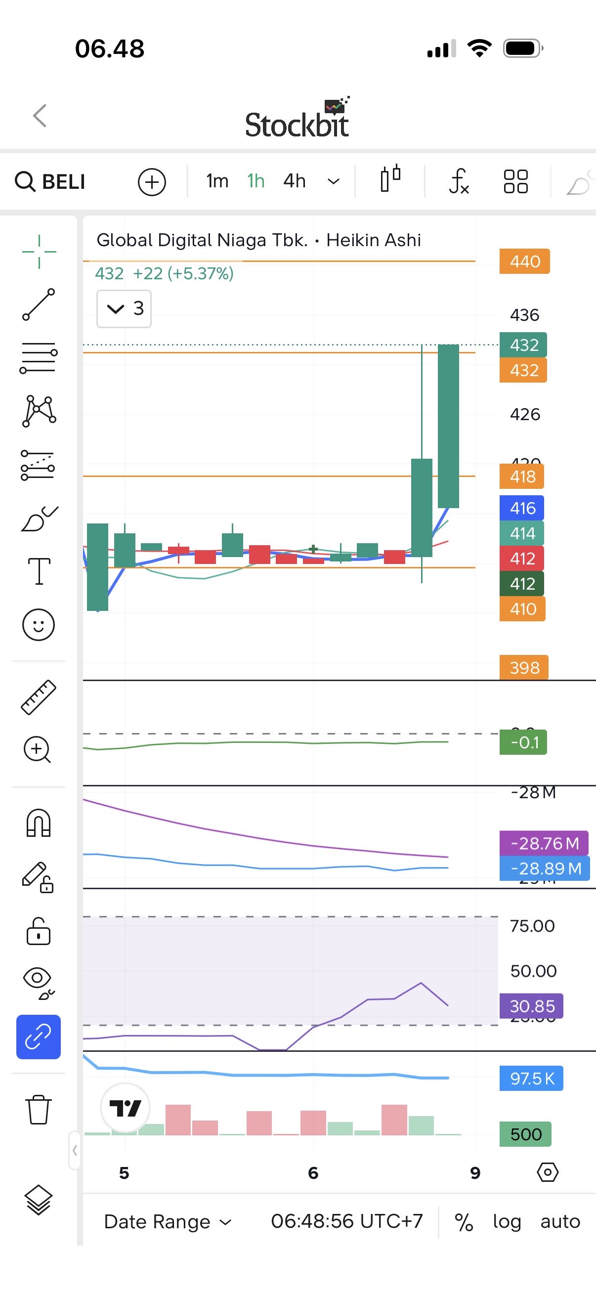 🔼 $BELI gap up ke 424 (+14 / +3.41%) dari 410