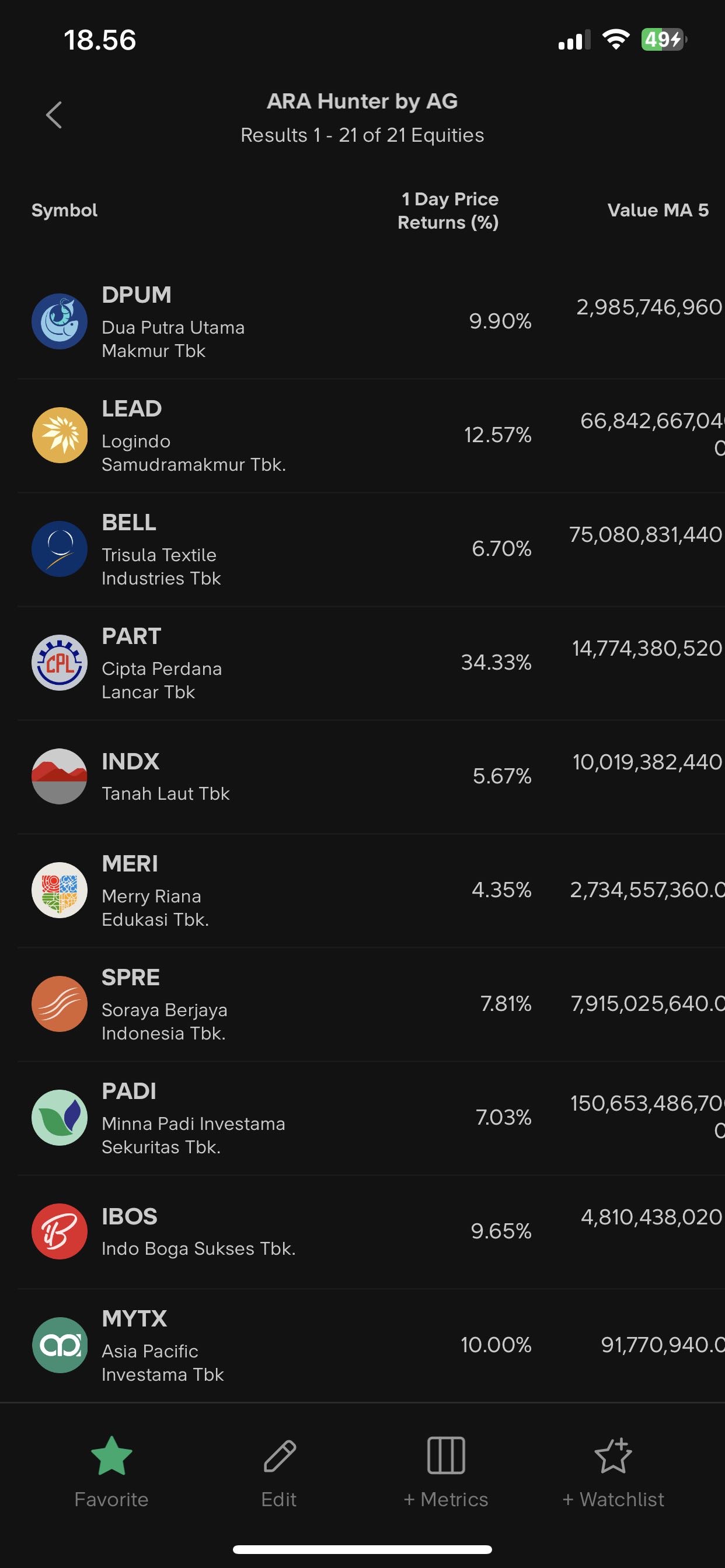 Hasil Screener ARA Hunter hari ini,