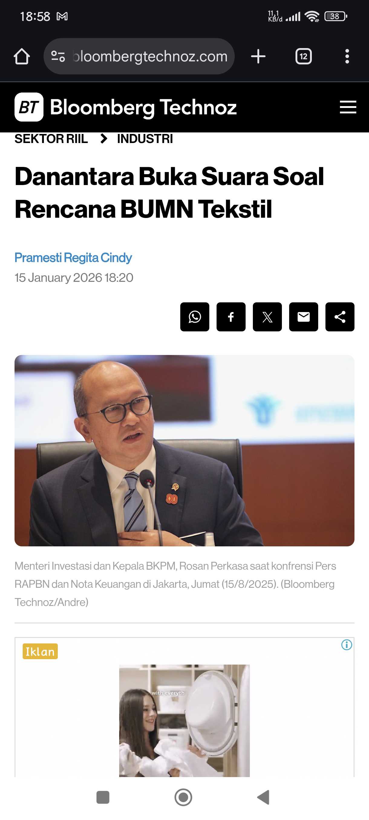 padahal berharap perusahaan tekstil yang sudah ada bakal disuntik dana š«¢ eh buat BUMN yang akan monopoli tapi RUGI