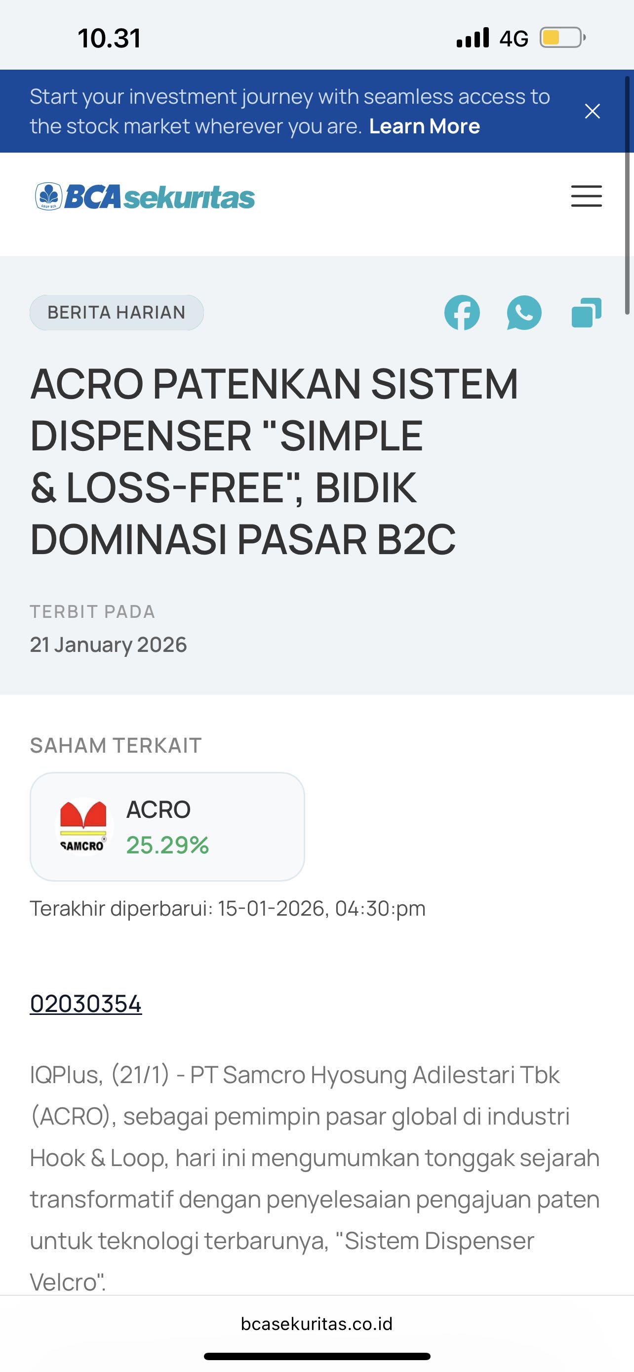 $ACRO untuk emiten ACRO ini merupakan berlian terpendam. Punya sentimen positif bagus, fundamental yg termasuk oke tapi secara historis harganya selalu dijagain. Untuk di masukin dan investing jangka menengah ini menarik, apalagi news sdh mulai menunjukkan arah perseoran utk garap bisnis B2C yg tentunya dampak ke pertumbuhan kinerja. Menarik jadi wathclist, $MINA $BELL