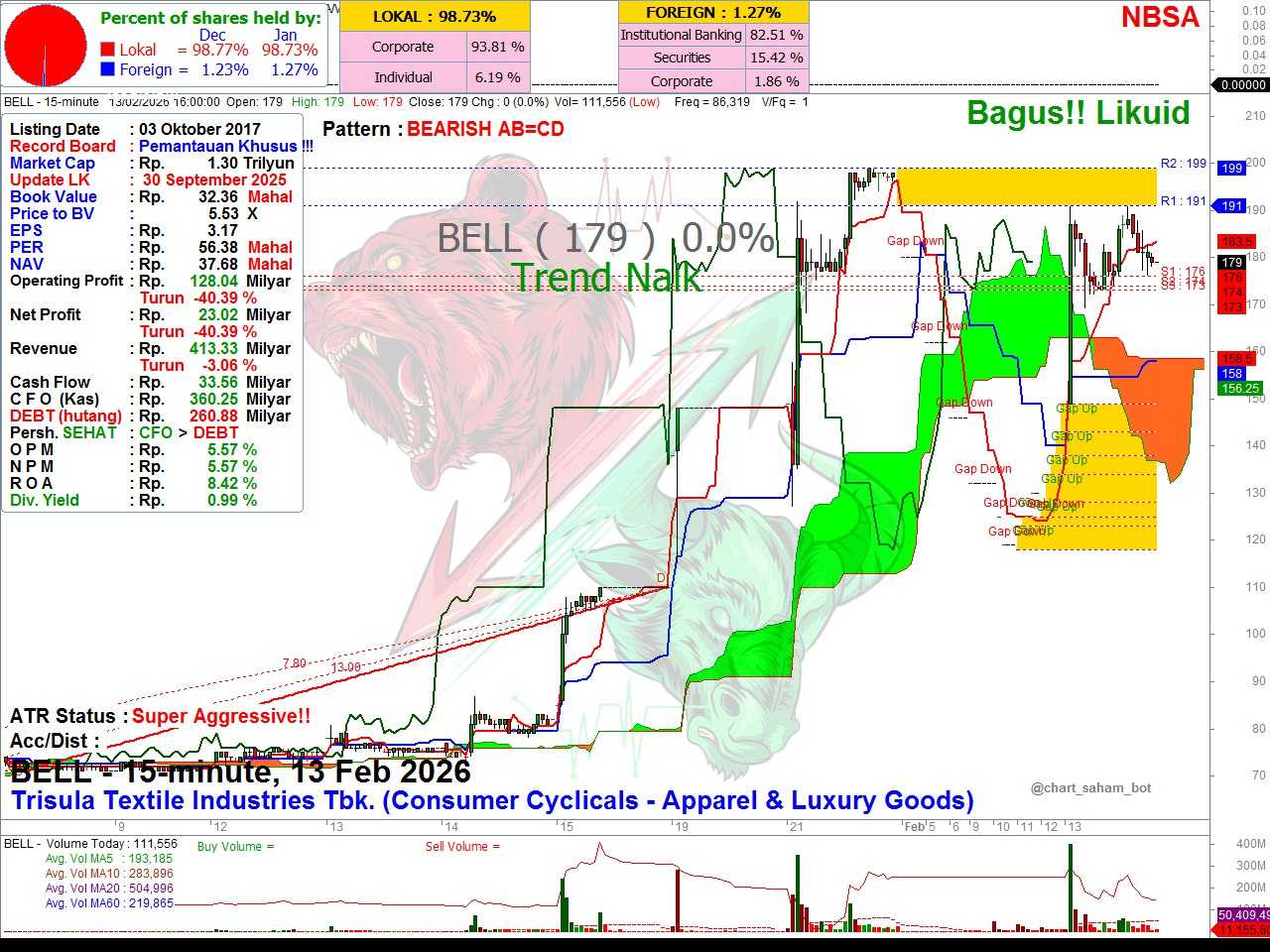 $BELL Kemaren saya post mau bersabar sampai kejemput, hari ini saya buka udah naik 179. Kalau menurut teman teman apakah akan kejemput atau di CL aja?