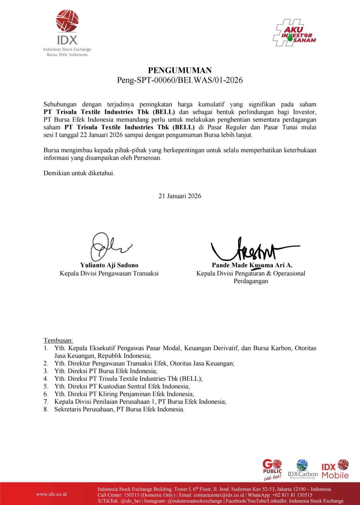 yg pasti ada info kok biasanya di web idx bahwasannya ada pembukaan unsuspend