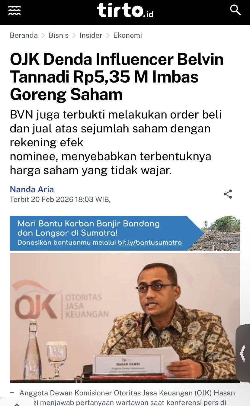 $INDS gara-gara ritel koar-koar si belvin jadi kena denda 5,3M dari OJk berarti dimata hukum urusan si belvin udah kelar tinggal sama para ritel paling abis ini ARB berjilid-jilid🤣🤣