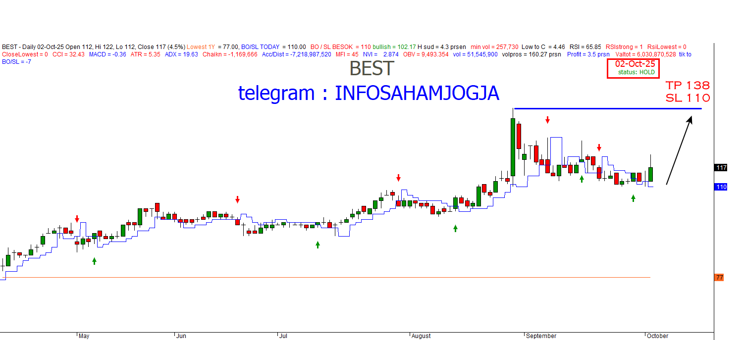 Bisa naik sampai berapa dan apakah sinyal perlawanan naik ini bisa menjadi sinyal dari berlanjutnya lagi tren naik harga saham #BEST yang sudah berjalan dari awal tahun?