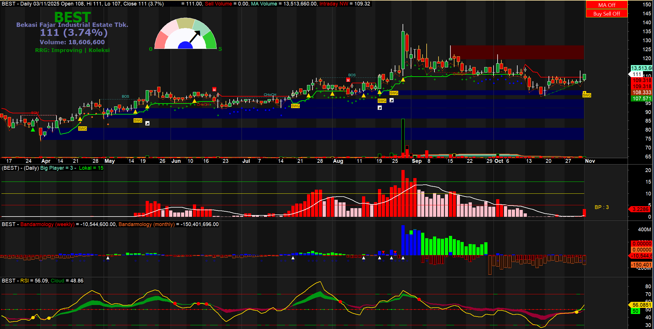 @R1z4 BEST mulai menarik di tambah dengan sinyal buy atau sinyal swing juga, perlu di catat juga BEST termasuk saham yang pernah tukeran barang saja untuk menaikkan harga, perlu hati hati juga kedepannya, dari broker summ nya juga sedikit menarik
