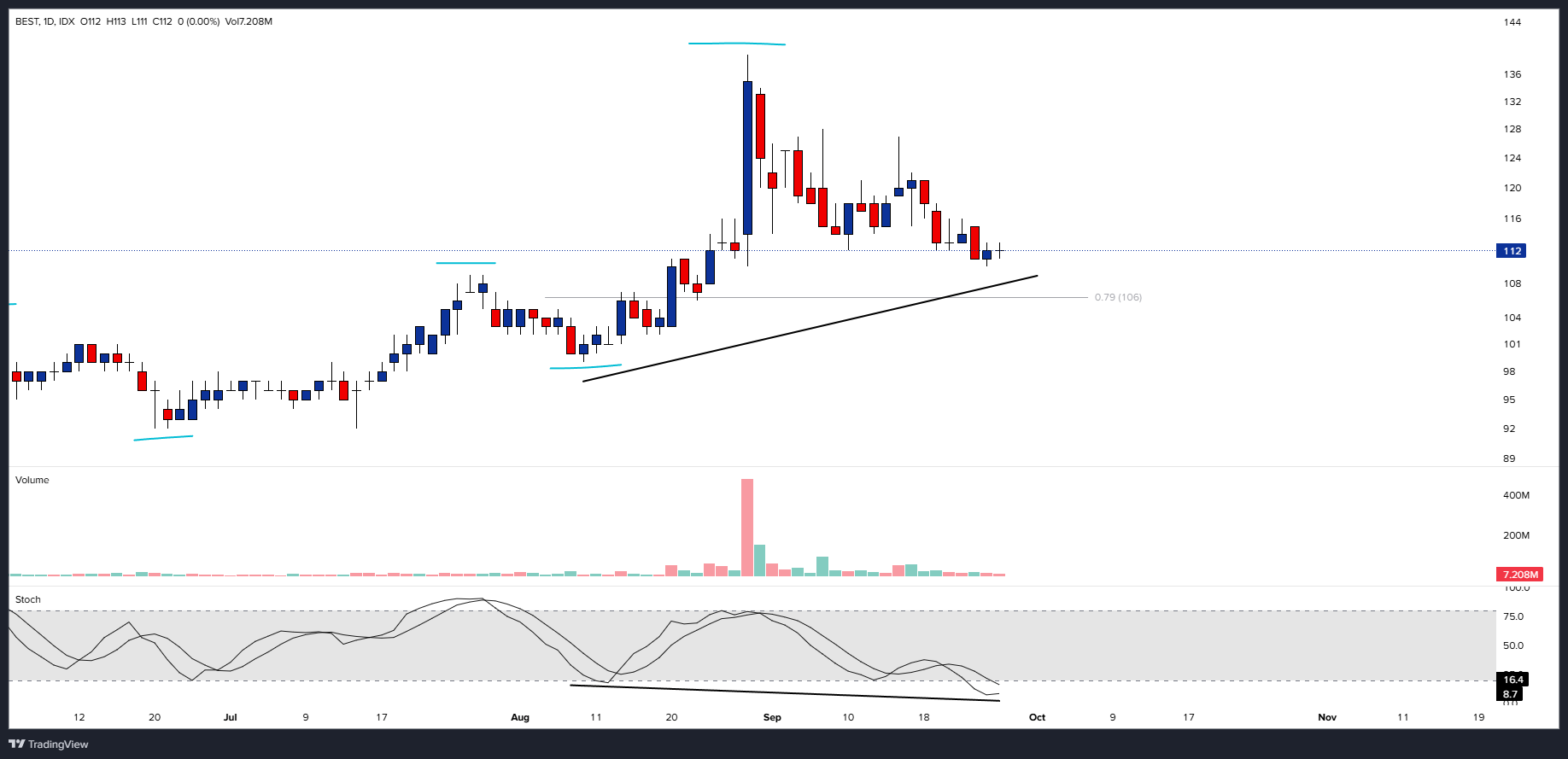 Harga saham $BEST terlihat mulai bergerak naik lagi pada perdagangan kemarin setelah tertekan turun di beberapa minggu sebelumnya