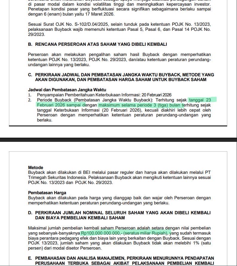 Melansir keterbukaan informasi BEI, perseroan menetapkan nilai buyback sebesar-besarnya Rp100 miliar yang sudah termasuk biaya ...