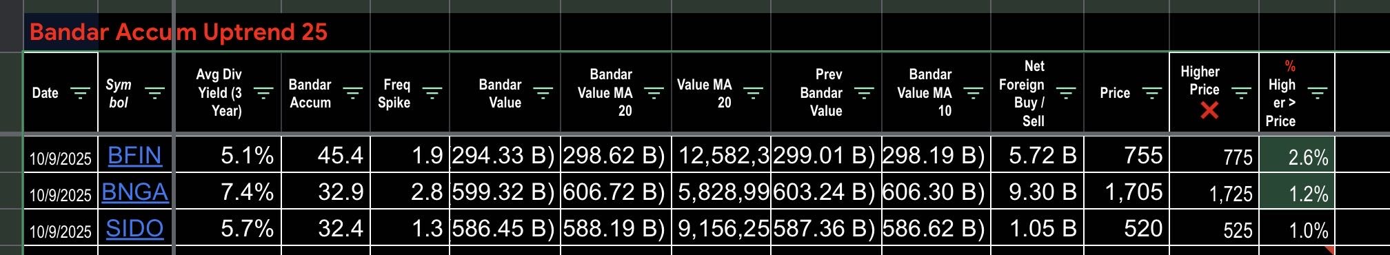 Kita tunggu % Higher to Price sewaktu closing nanti jam 16.00 untuk cross-check hasilnya yang selama ini fitur screener StockBit tidak mengecewakan.