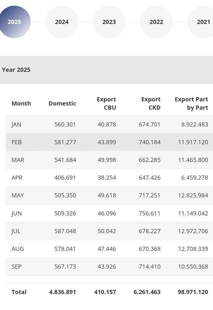 ➖ Distribusi Sep 2025 mencapai 567.173 unit.