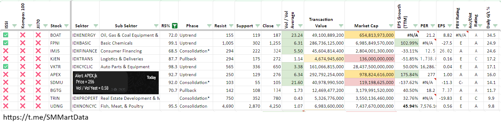 * Notes: Data RS%, EPS Growth bisa diakses lewat SMMartData Telegram Bot.