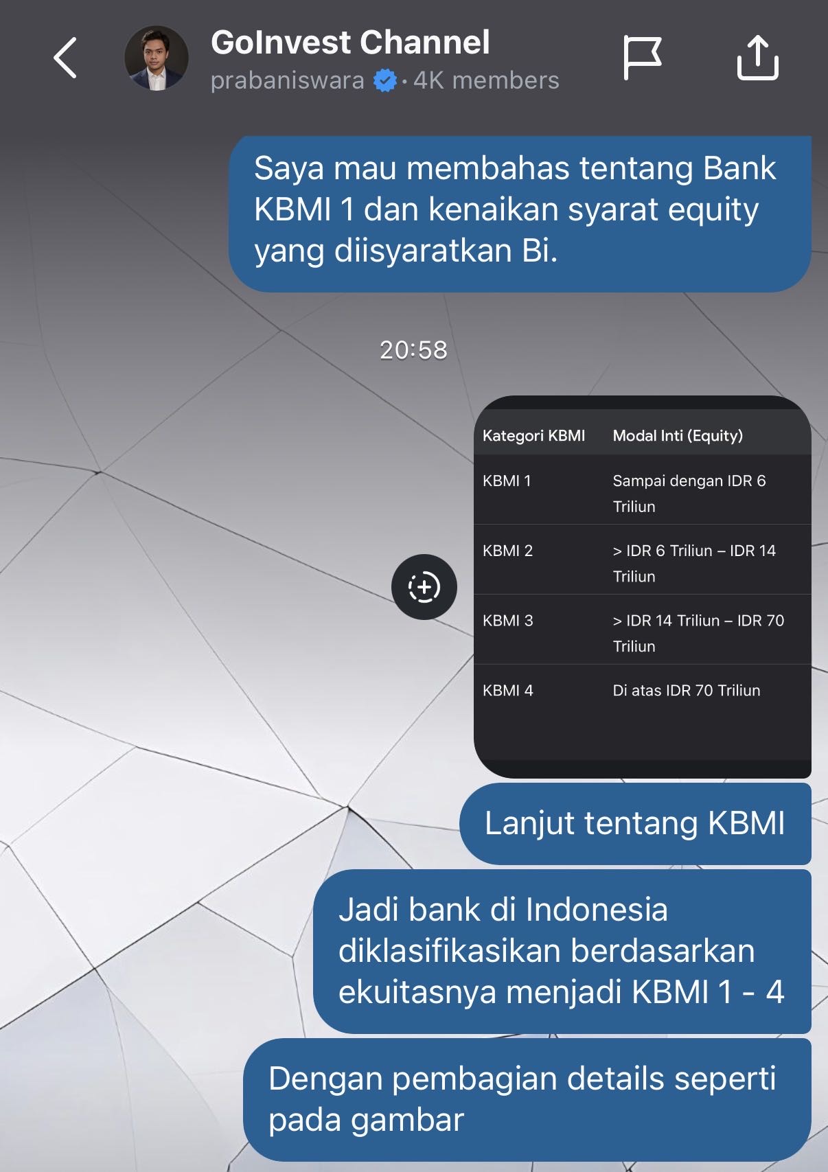Investment thesis tentang Bank KBMI 1 saya post di instagram channel saya: