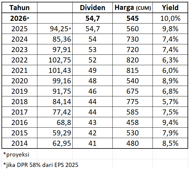 Hitungan diatas adalah dengan asumsi DPR 40% DAN EPS Q4 2025 TIDAK BOLEH lebih rendah dari Q3 2025