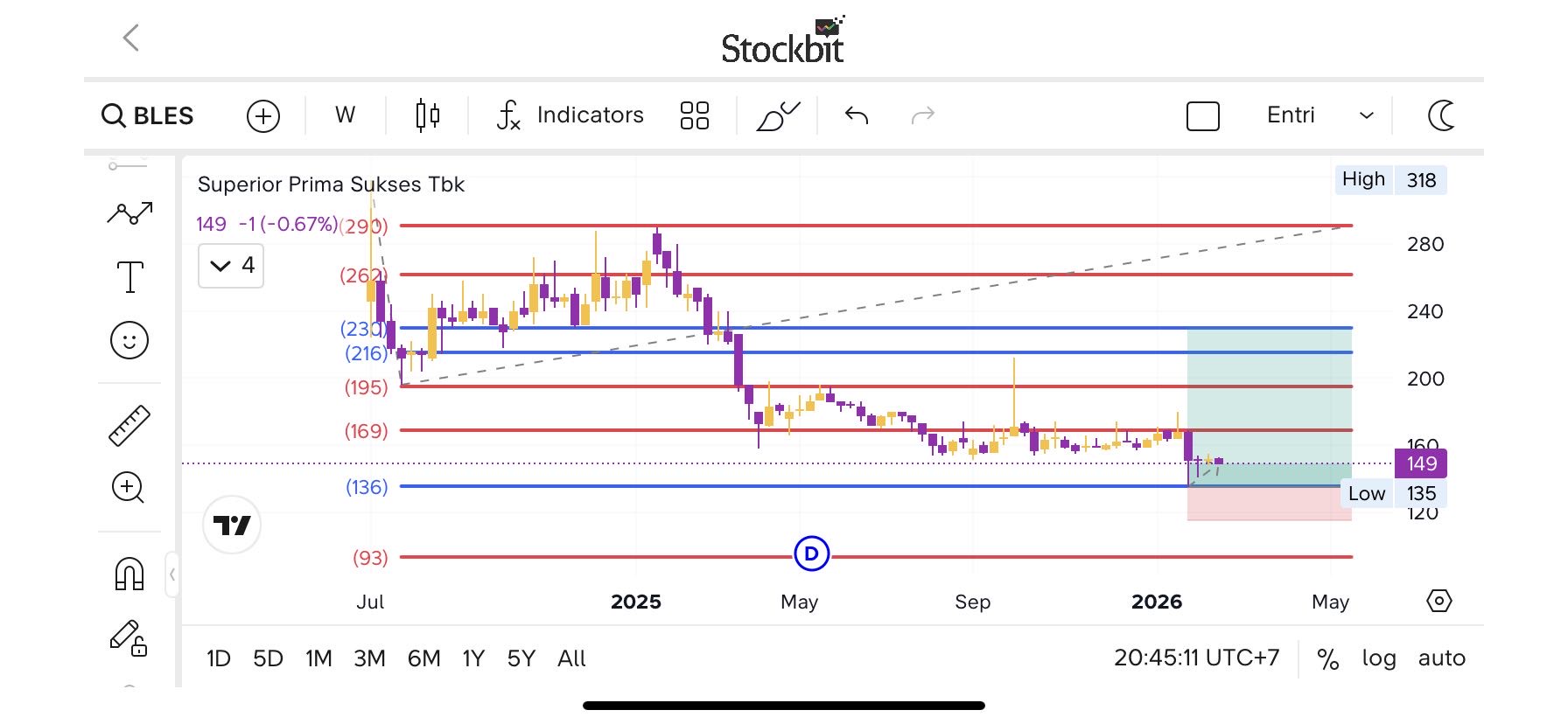 - Entry: Buy kalau breakout > 138 dengan volume besar