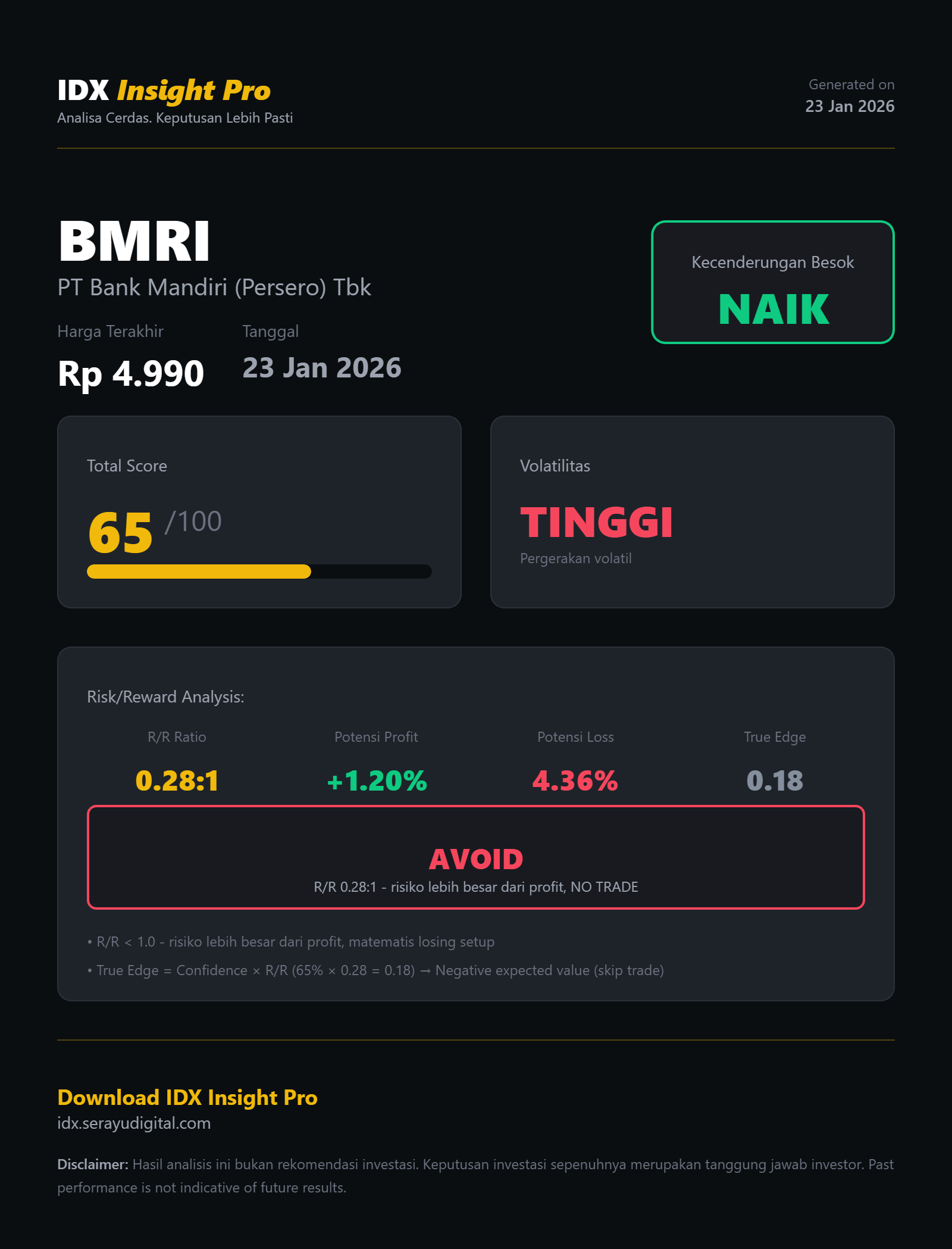 Disclaimer: Saham adalah instrumen berisiko tinggi. Informasi ini bersifat edukatif dan informatif, bukan rekomendasi jual atau beli. Pengguna wajib melakukan riset mandiri (DYOR).