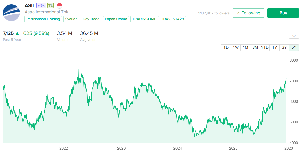 Saat ini saya paling suka dengan saham-saham model $ASII yang secara jangka panjang labanya terus tumbuh, tetapi jarang ada yang lirik sehingga dari pasca covid sampe sekarang harganya sideways di rangel 4000an - 8000an paling tinggi. Bisa dibilang salah satu perusahaan konglomerasi dengan banyak bidang usaha. Keuntungan operasional jelas dan tidak butuh goreng-goreng saham.