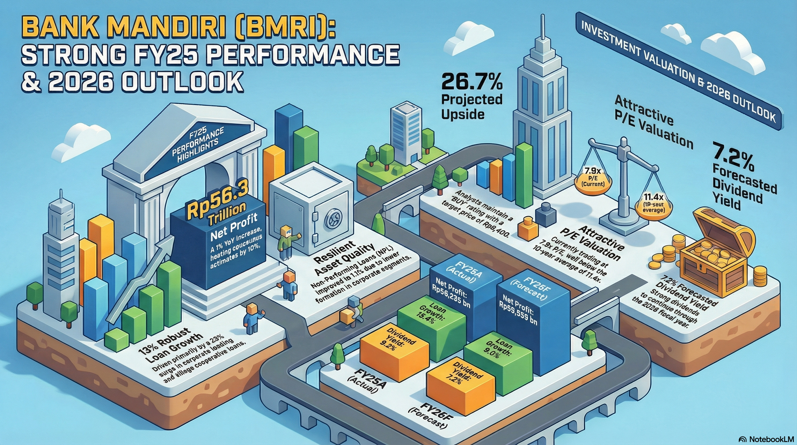 Eksposur korporasinya yang masif akan menjadi bumerang saat ekonomi melambat. Tanpa dukungan dana asing, Mandiri bisa terjun bebas mencari titik keseimbangan baru di area Rp 4.500 - Rp 4.800. Level ini adalah area "pembersihan" retail yang selama ini terlalu optimis.