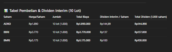 Harganya lumayan Premium 100 x 100 lembar saham anda sudah dapat dividen sekitar 10,000 rupiah