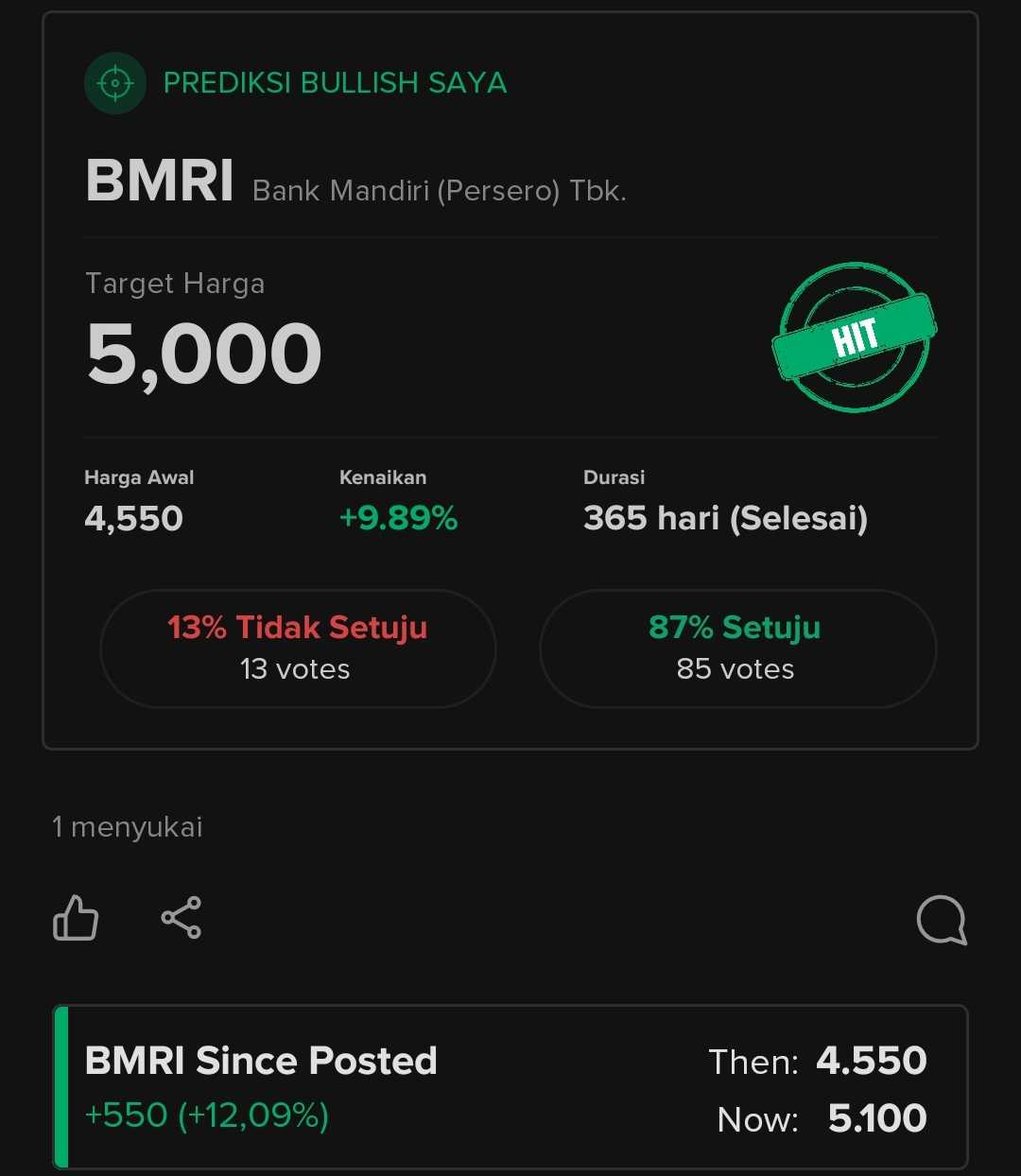 @Shollahuddin sjujurnya takut kayak bulan Mei kmren . tepatnya di 19Mei . baik dngn valid 5500an dan broksumnya epikk . trnyta bsoknya mulai turun smpe kmren Oktober di 4010 $BMRI