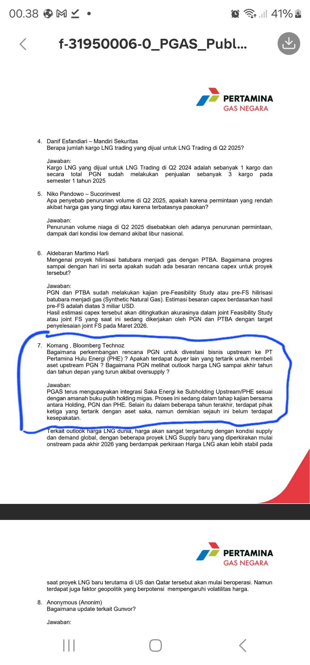 Terima kasih atas ulasannya wak @skydrugz27. Sepertinya divestasinya bakal dalam bentuk restrukturisai internal, melihat hasil pubex lalu yang mengkonfirmasi $PGAS sementara mengadakan kajian bareng Pertamina Hulu Energi (PHE) dan holding terkait divestasi hulu PGAS.