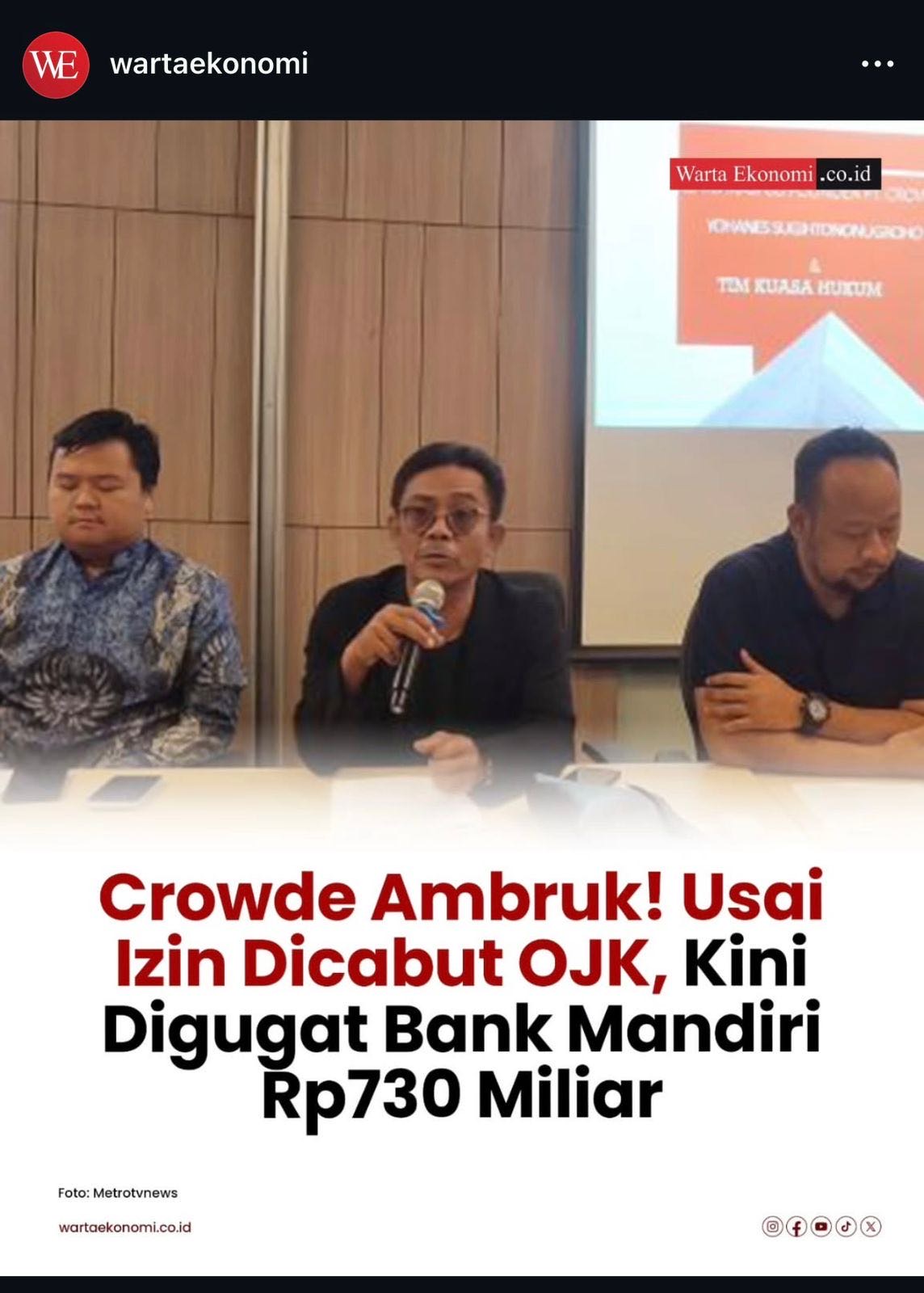 Skg tugas kejagung selidiki siapa petinggi $BMRI yg menyediakan pinjaman ke CROWDE .