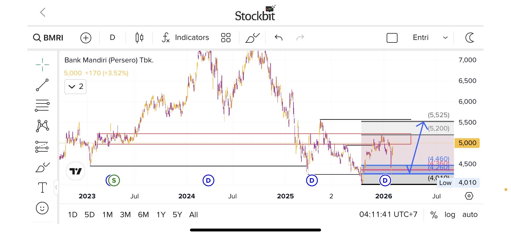 • Resistance: 5025.00 (0.5% dari harga)