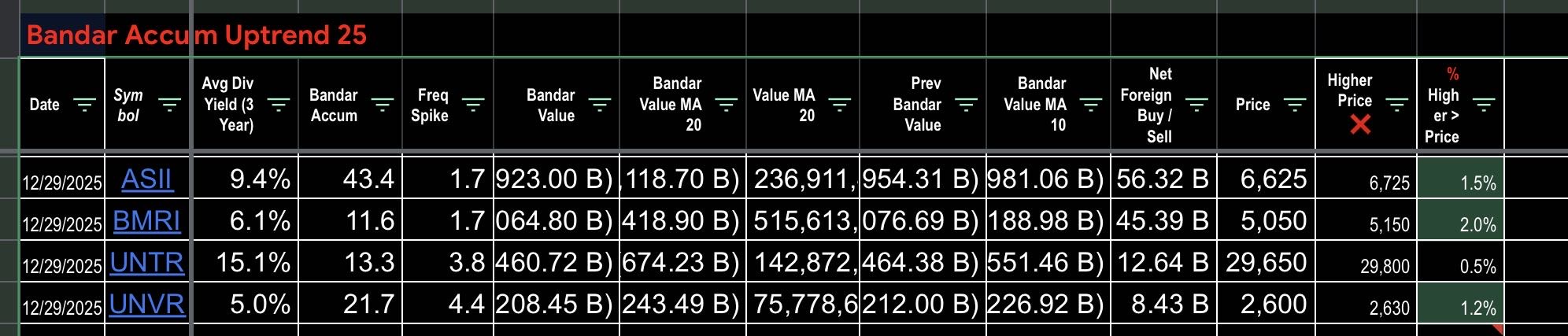 Kita tunggu % Higher to Price sewaktu closing nanti jam 16.00 untuk cross-check hasilnya yang selama ini fitur screener StockBit tidak mengecewakan.
