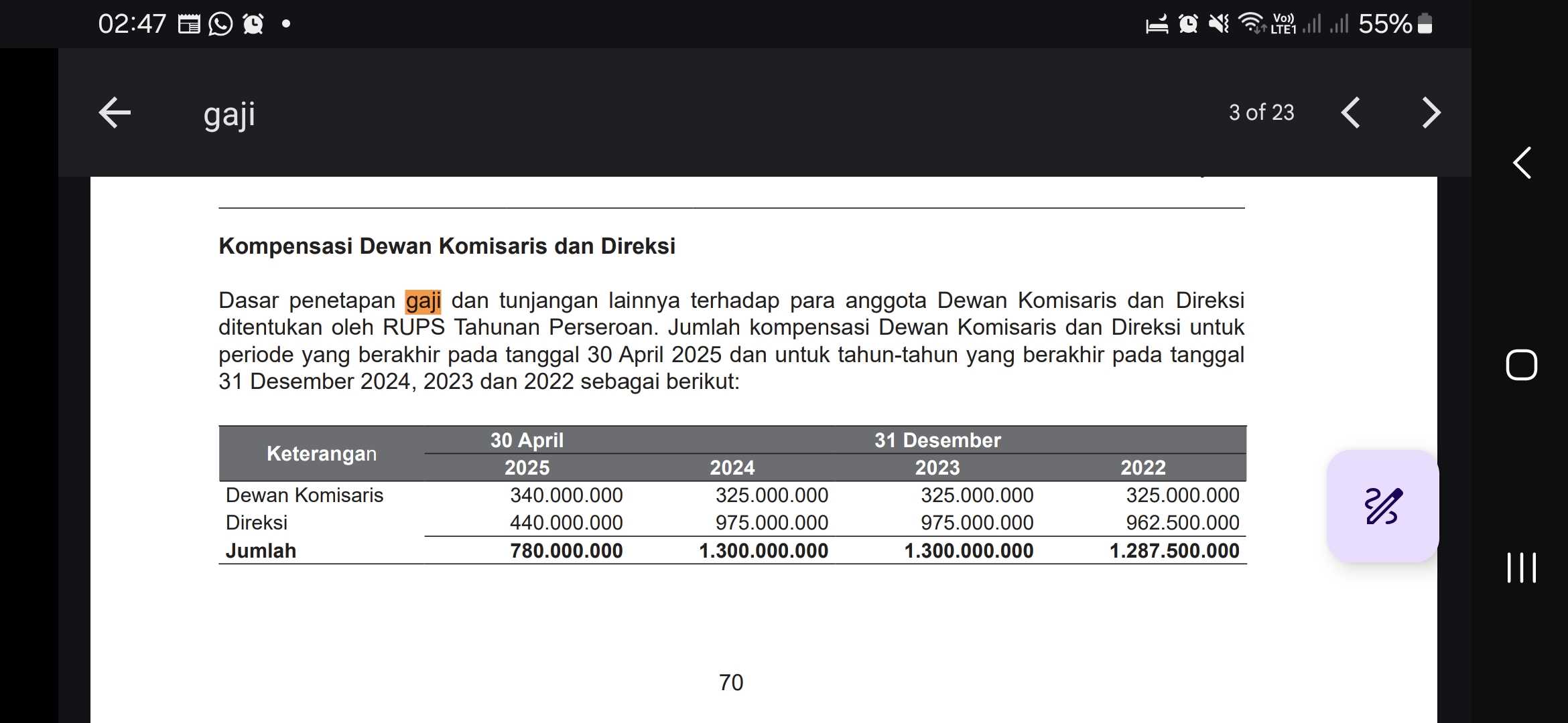 @rizkysaputra205 kan ada di prospektus. 4 bulan gaji 3 direktur $PJHB (jan-apr 2025) 440 juta. jadi masing2 146 juta/4 bulan, per bulan rata-rata 36 juta kan? coba bandingin sama direktur2 $BMRI yang dapet ratusan milyar, makanya net income anjlok karena habis buat bayar gaji direksinya.