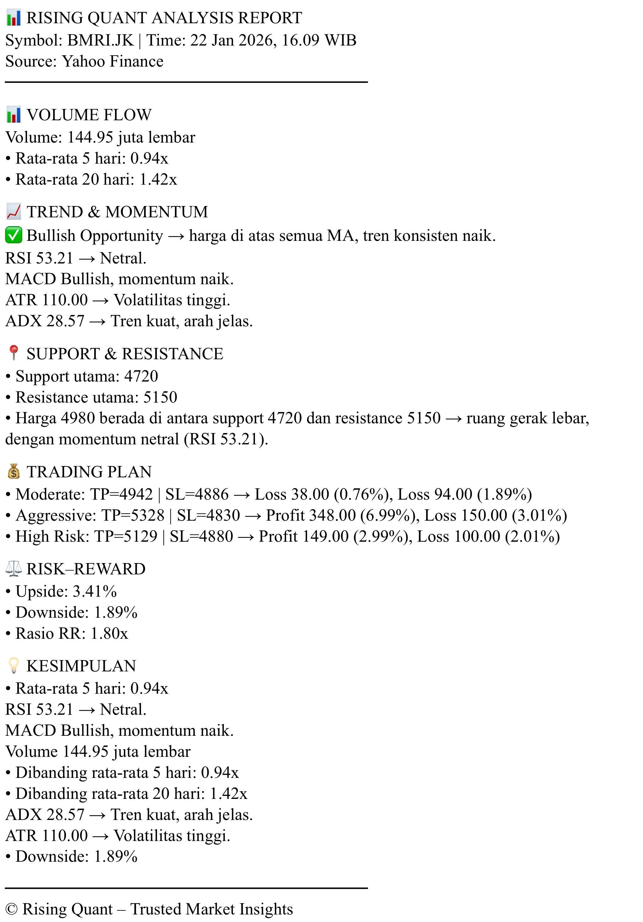Namun, BMRI belum terdapat informasi katalis mendukung saat ini.