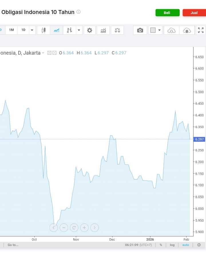 ➖ Yield SBN 10 tahun sudah balik menyentuh ke bawah 6,3%, level yang ditinggalkan sejak 19 Jan 2026.