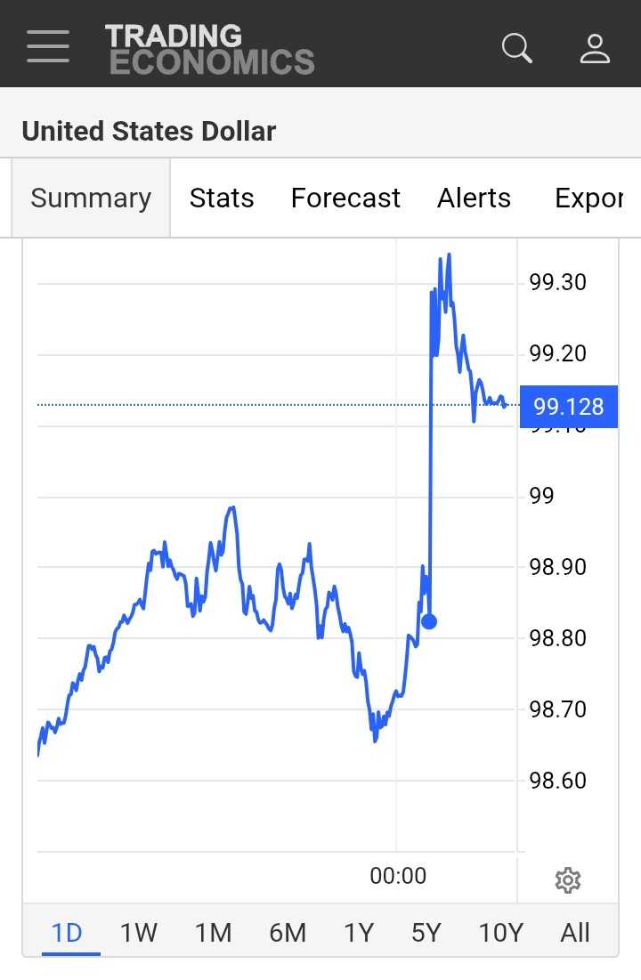 ➖ US Dollar Index DXY justru naik ke atas 99, bahkan sempat menyentuh 99,3.