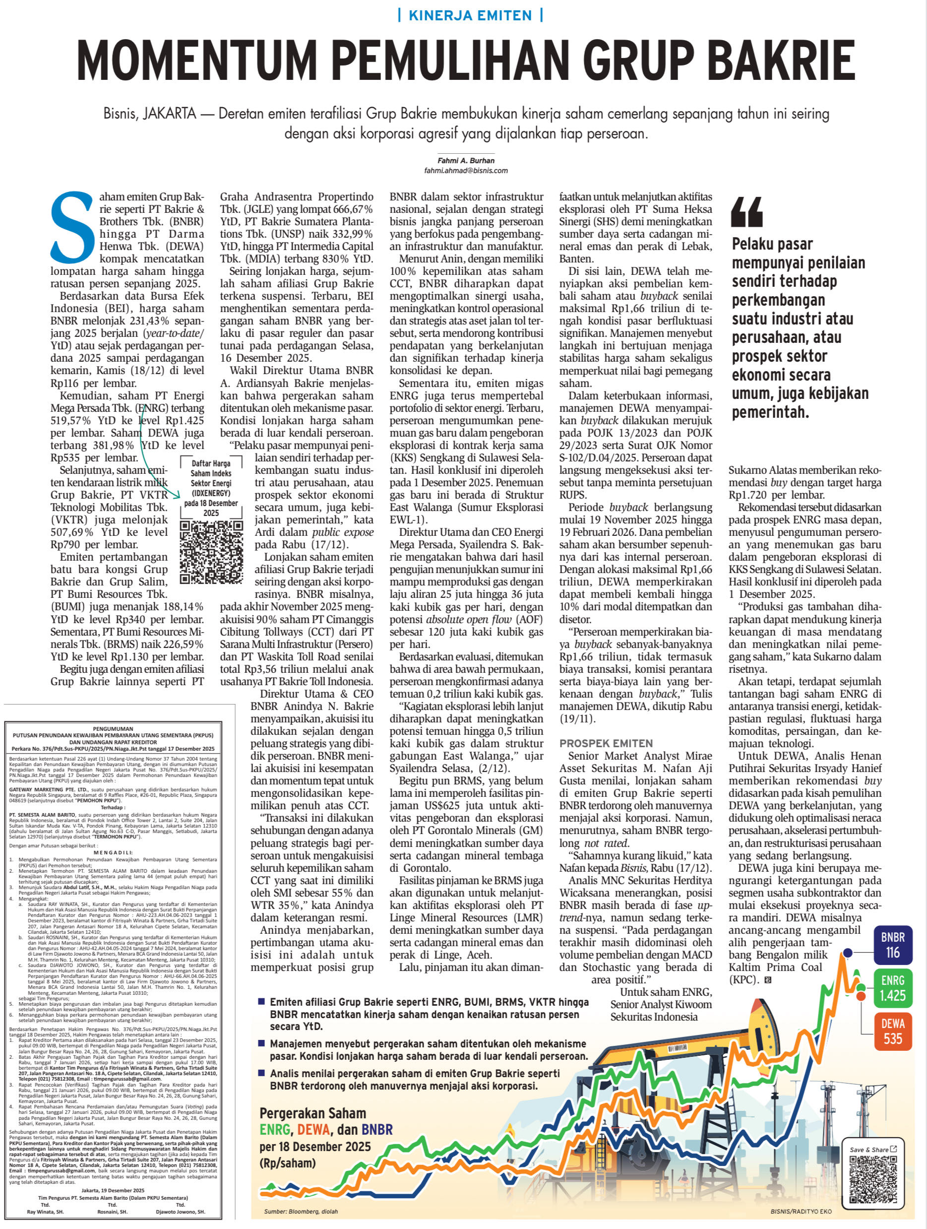 Menurut teman teman, diantara saham Keluarga Pak Bakrie, mana yang masih memiliki potensi MINIMAL 2x BAGGER dari Harga penutupan jumat tanggal 19 Desember 2025.. Mari kita diskusi sehat di kolom komentar..