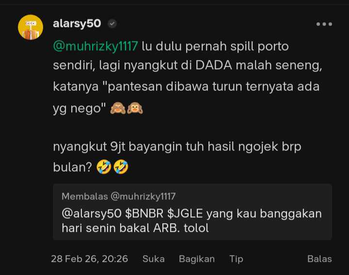 $BNBR kemarin sih ada sedikit saran cuma malah di kata kata in eh, apa itu analisa wkwkwkwkw di kira ngefear kaga adaaa. mana ada ngefear, orang suruh ngehindari sementara kalau udah waktunya masuk masuk kitaππ€£