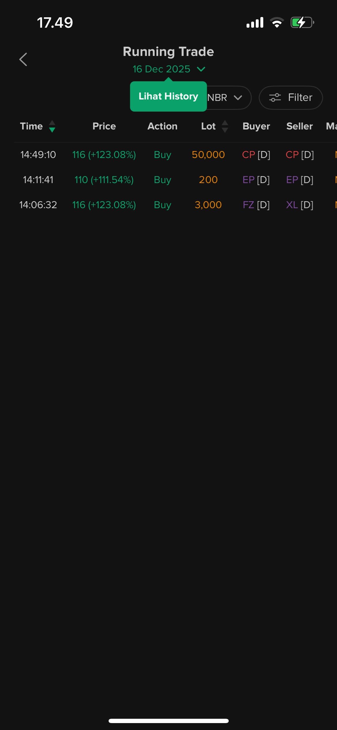 @MrF4ct mulai perhitungan suspend nanti bro di harga 50 lebih. dihitung kira2 100% angka 100 baru suspend. kyk kakaknya $BNBR ... tuh setelah 8x ara lagi dari harga 52. kira2 begitu, buat gambaran $ELTY
