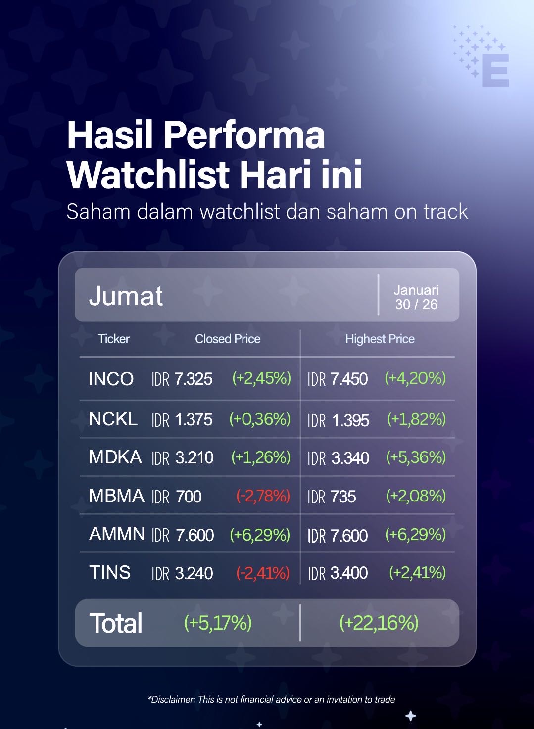 Watchlist perdana setelah hampir turun ke frontier market😵💫, performance kita di 22%🙌