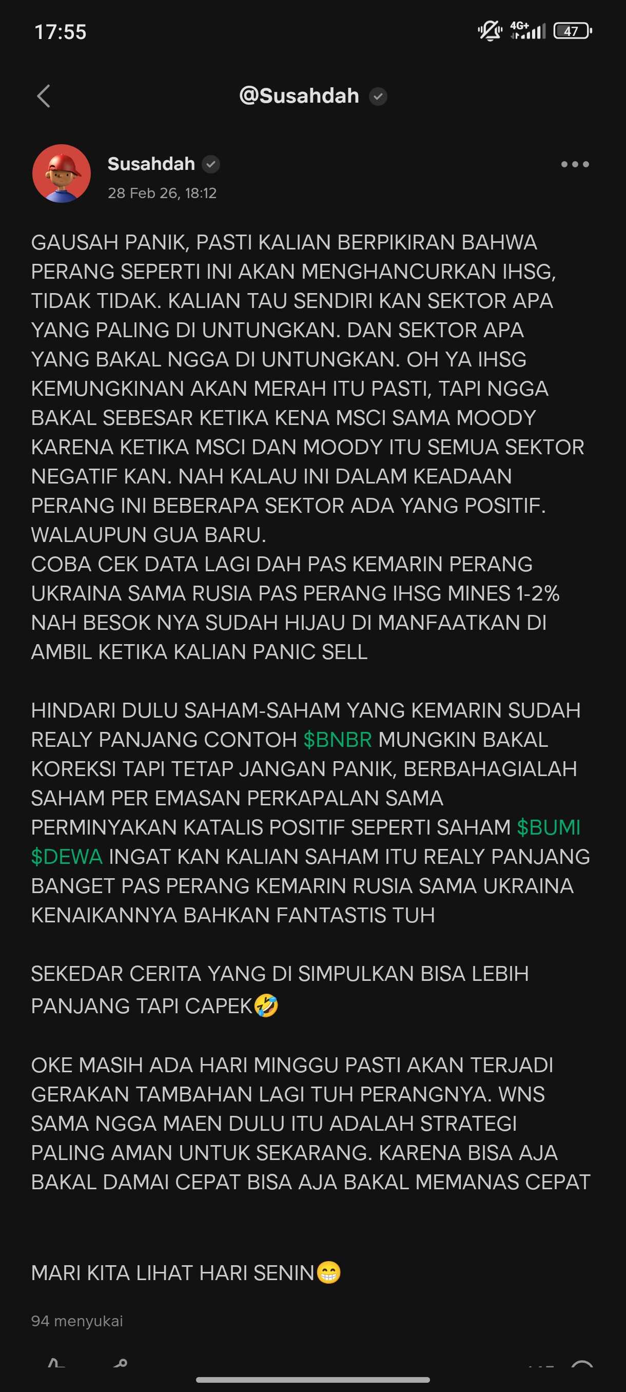 $BNBR baru jenguk ni emiten lagi, bjir hampir kembali ke harga FCA, untung dah TP sebelum perangπΏ