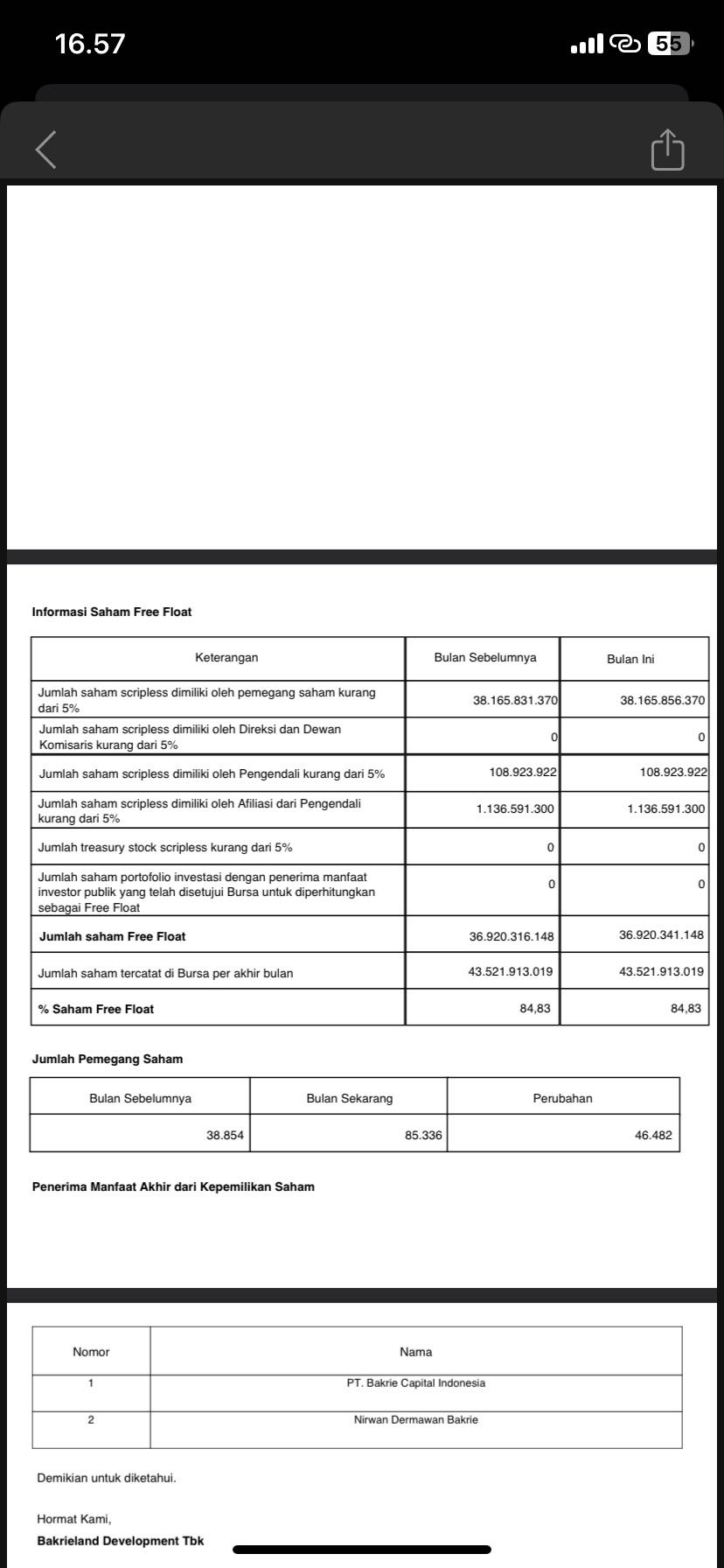$BNBR dipastikan keluar FCA ini ya ..