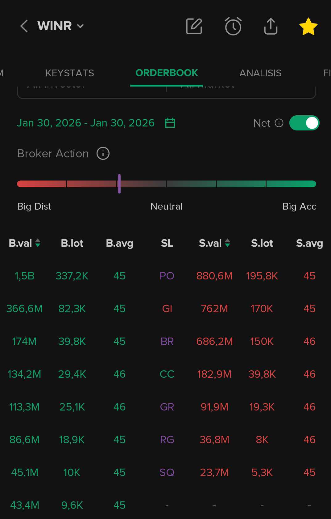 Keyakinan saya, broksum itu bukan indikator saham bakal naik/turun. Waktu diangkat kemarin top buyernya broker XL. Semakin diolah $BNBR memang ketinggian harganya, jadi wajar2 saja arb terus. Kesimpulannya BNBR to the moon 🌕